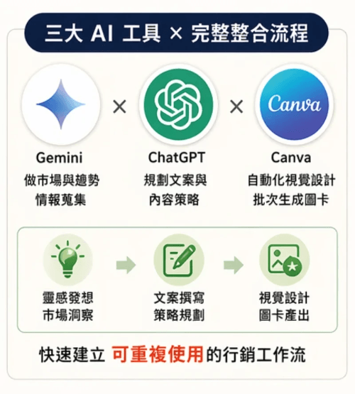 整合 Gemini • ChatGPT • Canva,建立可重複使用的行銷工作流