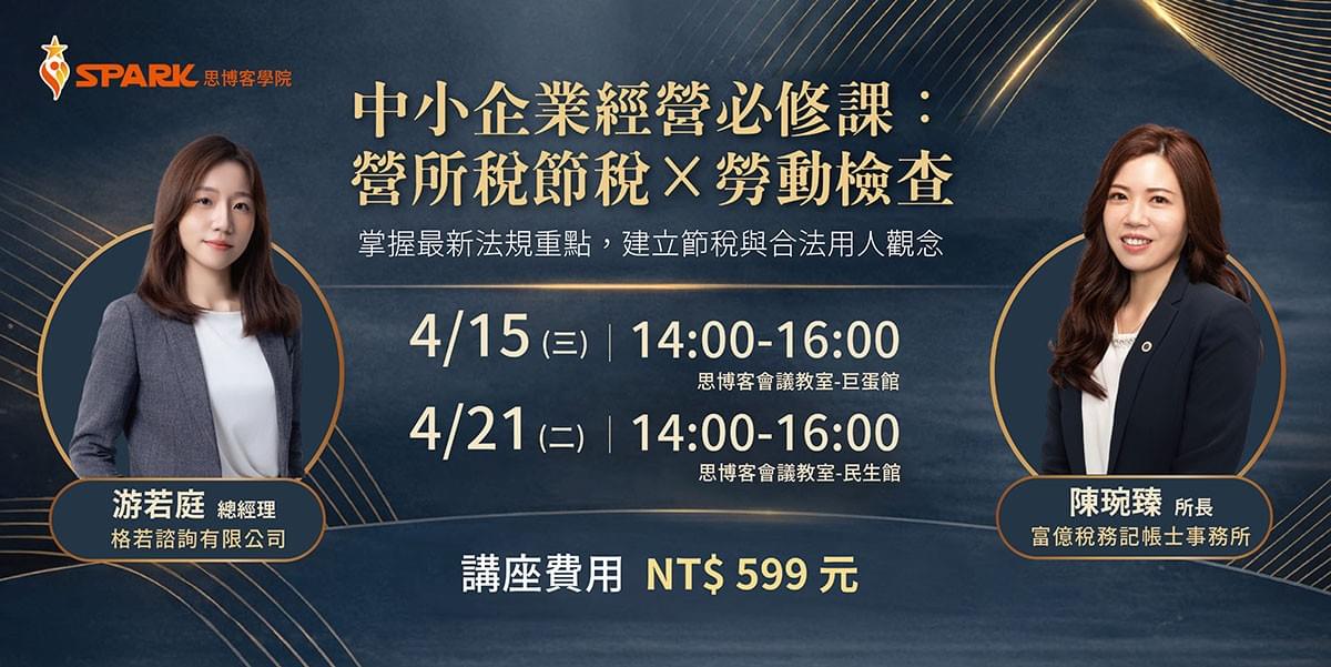 2小時掌握企業營運兩大核心,節省摸索時間,降低稅務與勞資成本。